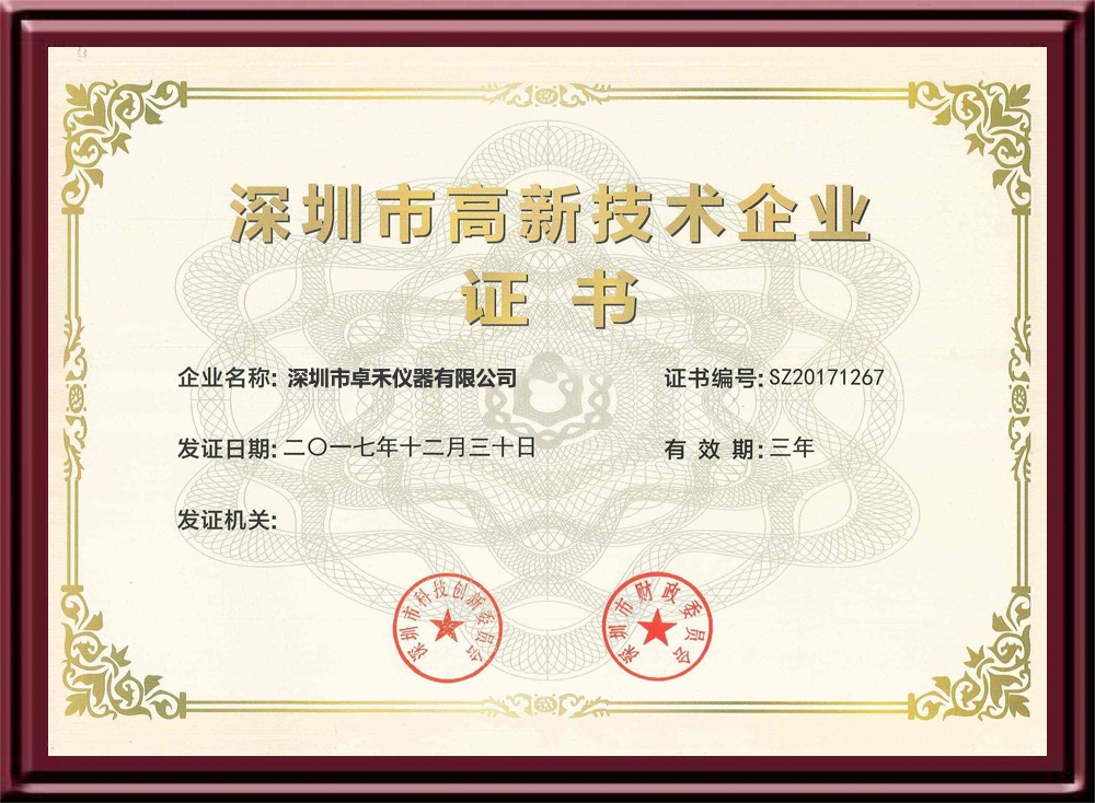 welcome欢迎光临威尼斯深圳市高新技术企业证书