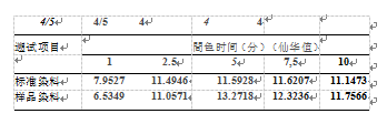 从印花色牢度数据得知:样品牢度性能与标准染料基本一致,均达到了较高色牢度。
