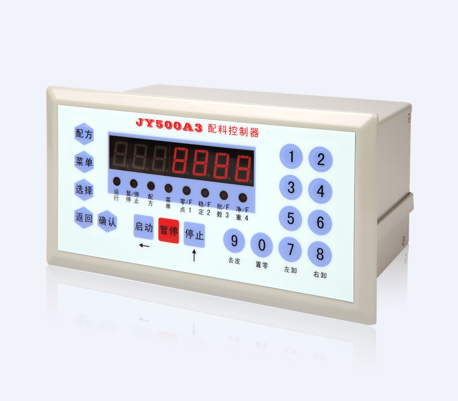 卓禾仪器JY500A3系列配料控制器适合于在同一个称料斗内累积加配多种物料的配料装置中作为控制部件。 JY500A3系列配料控制器为LED数码显示,带有十八个控制按键,操作简单,便于掌握。主要用于建材、建筑行业中各种散装颗粒、分装物料的定量与配比控制。